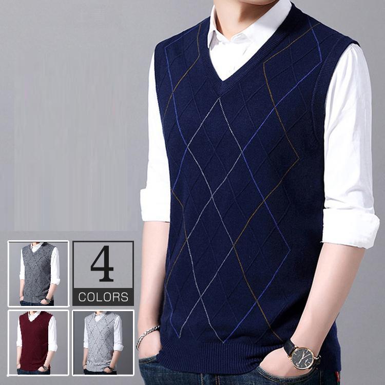 春秋冬 ニットベスト メンズニットベスト ビジネス セーター カジュアル Vネック 洗える ビジネスベスト 男性 オフィス インナー ニットチョッキ