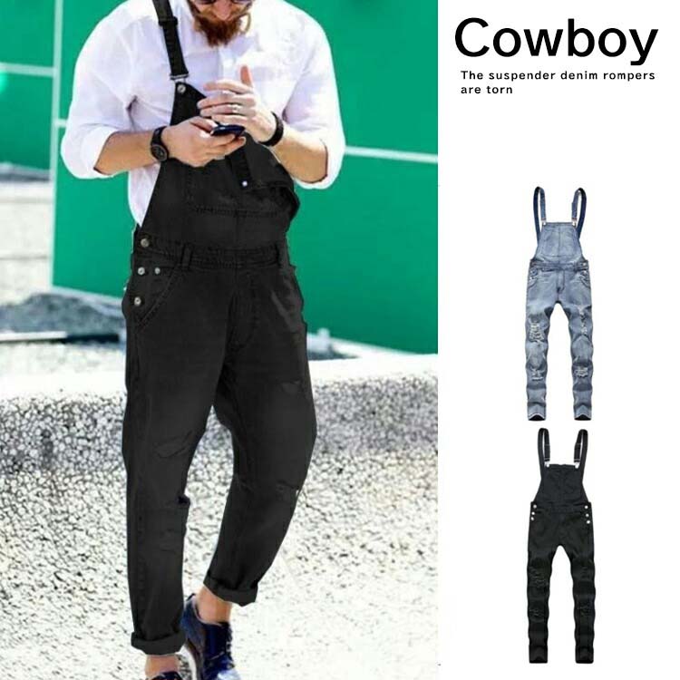 オーバーオール ゆったり ジーンズ オールインワン メンズ デニムパンツオールインワン ジーンズ オーバーオール メンズボトムス ストリート ダメージ デニムパンツ ワークパンツ オーバーオール ゆったり ジーンズ オールインワン メンズ デニムパンツ