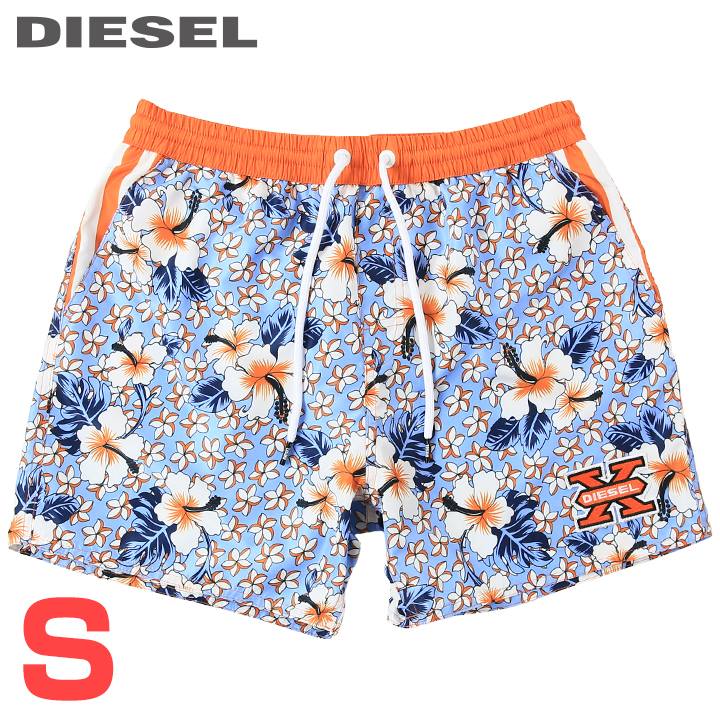■DIESEL ディーゼル メンズ■ボタニカル総柄 メンズ水着 男性水着 ショートトランクス サーフパンツ 海パン ビーチウェア スイムウェア【BMBX-CAYBAY】【サイズS】【ライトブルー×オレンジ】die-m-c-f4-c14 《_メーカー希望小売価格17,380円》