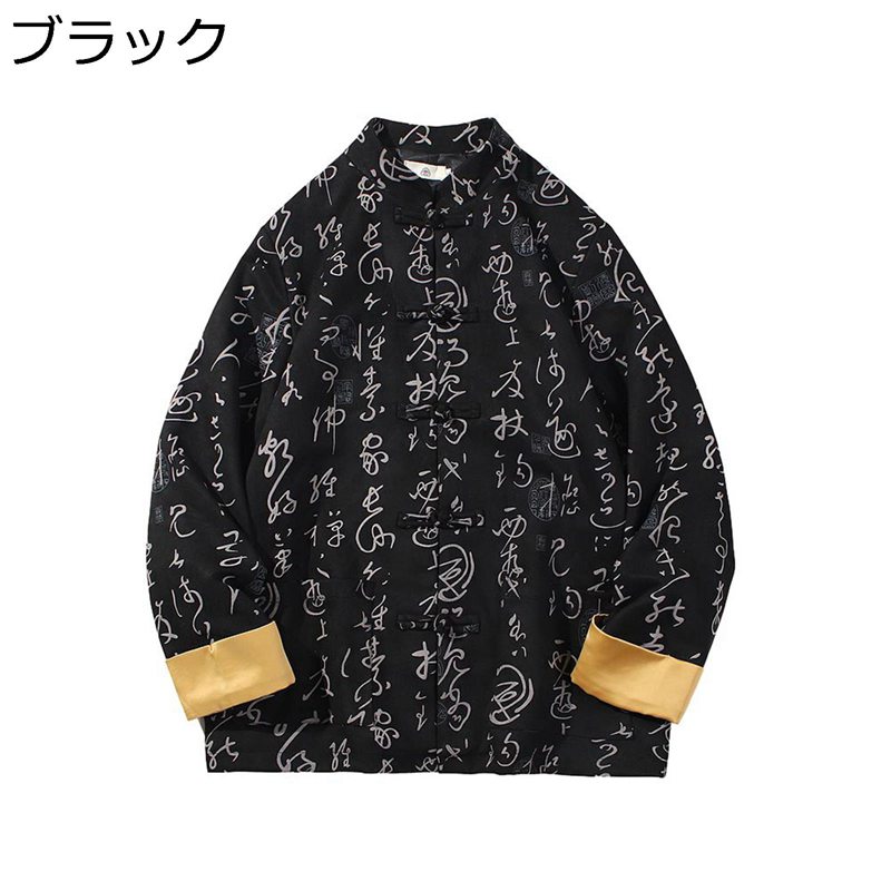 チャイナ服 アウター ジャケット チャイナ風 長袖 スエード 文字柄 プリント カジュアル チャイナボタン ポケット付き 大きいサイズ ファッション カッコイイ 春秋 旅行 普段着 通勤 通学