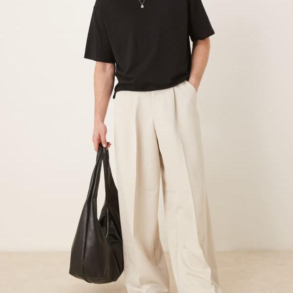 エイソス ASOS asos ASOS DESIGNのスマートなエクストリームワイドレッグパンツ(フロントプリーツ、ストーン) パンツ ボトム メンズ 男性 インポートブランド 小さいサイズから大きいサイズまで