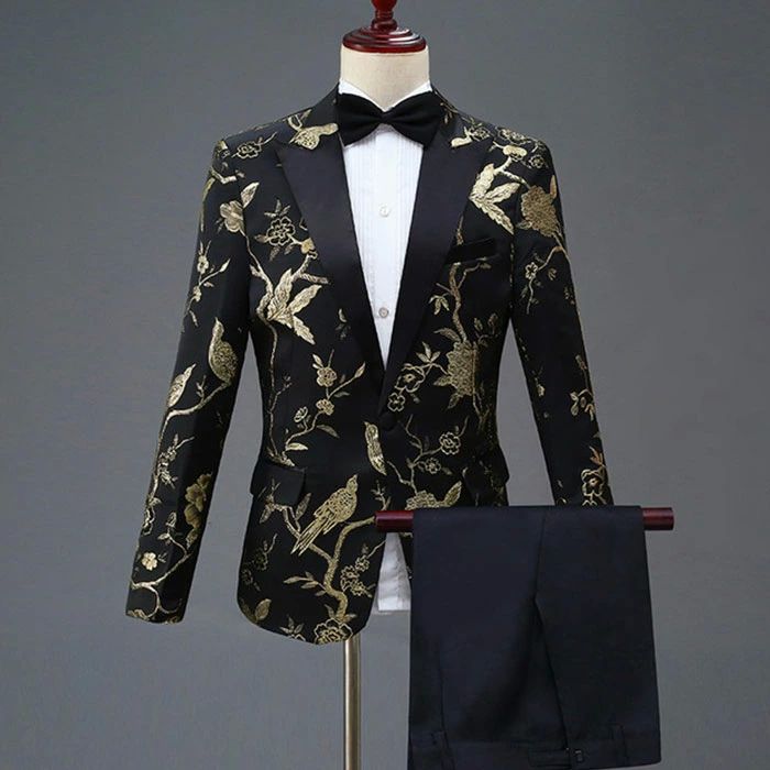 送料 青 緑 赤 金 柄 花 鳥 舞台衣装 カラオケ衣装 ダンス衣装 ステージ衣装 新年会 忘年会 スーツセット 上下2点セット スーツ