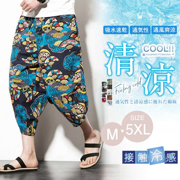 サルエルパンツ リネンパンツ メンズ 春夏 綿麻 亜麻 涼しい クロップドパンツ 7分丈 ワイドパンツ ビッグシルエット ゆったり カジュアル ボトムス ウエストゴム リラックス ナチュラル 大きいサイズ オシャレ アロハ 海 旅行 ビーチ 全9色 総柄 TK-S
