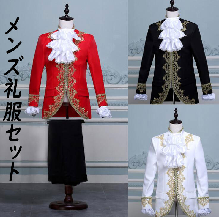 商品詳細 メンズ礼服セット 欧風 タキシードジャケット 舞台衣装 王子様 商品内容 ジャケット+パンツ+ネック飾り+袖口飾り *シャツは含めません。