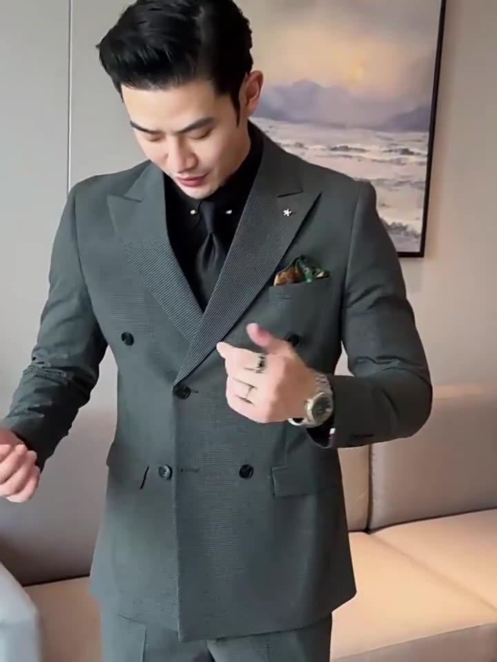スーツ 春 ダブルボタン スリム カジュアル ビジネス スーツ メンズ 通勤 チェック 2点セット