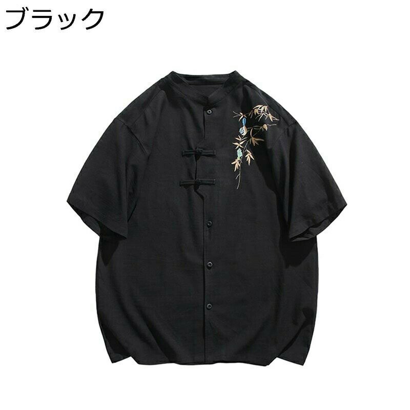 チャイナシャツ 綿麻シャツ 竹柄刺繍 チャイナトプス 半袖 メンズ 結び釦シャツ 大きいサイズ 夏服 前開き カジュアルシャツ 中華服 武術服 太極拳服 唐装 漢服 春秋夏着 スタンドカラー リネンシャツ