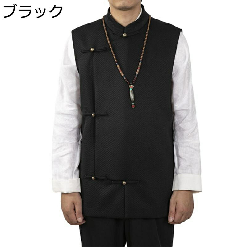 ベスト 唐装 チャイナ服 メンズ ノースリーブ 春秋 無地 カジュアル ゆったり おしゃれ チャイナ風 カンフーシャツ トップス 大きいサイズ 通気性 速乾性 ファッション 通学 お出掛け 旅行