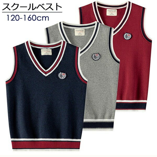 スクールベスト ニットベスト ベスト ニット Vネック 子供 ジュニア キッズ 入園式 ベスト 子供用 定番 男女児兼用 正統派 学生服 小学生 女子高生 男の子 女の子 男児 女児 無地 通学 制服 人気 かわいい 入園準備 グレー ネイビー ワインレッド