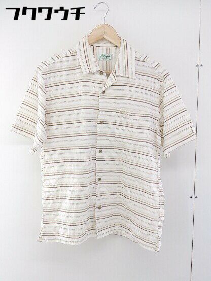◇ ◎ CROCODILE クロコダイル ボーダー 半袖 シャツ サイズM ホワイト ブラウン系 メンズ 【中古】管理番号110521001877320210604ベースW42/愛付属品替えボタン1個首周り内側に汚れあり。
