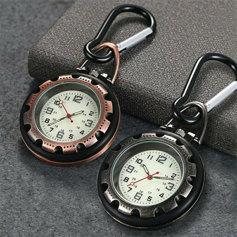 ナースウォッチ 懐中時計 夜光 キーホルダー時計 1ATM防水 合金 丸型 アナログ カラビナ 男女兼用 メンズ レディース