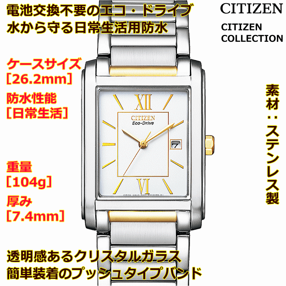 ◆ギフト対応アイコン詳細 ■主な共通特徴CITIZEN CITIZENコレクション エコ・ドライブ 【男性用】 商品詳細ムーブメントエコ・ドライブ(光発電6ヶ月) 精度:±15秒/月サイズ重量:104g 厚み:7,4mmケースケースサイズ【⇔】:26,5mm ステンレス 日常生活用防水ガラスクリスタルガラスバンド三ツ折れプッシュタイプ中留機能秒針停止機能 日付早修正機能 充電警告機能 過充電防止機能CITIZEN CITIZENコレクション エコ・ドライブ 【女性用】 商品詳細ムーブメントエコ・ドライブ(光発電12ヶ月) 精度:±15秒/月サイズ重量:56g 厚み:6,1mmケースケースサイズ【⇔】:18,0mm ステンレス 日常生活用防水ガラスクリスタルガラスバンド三ツ折れプッシュタイプ中留機能秒針停止機能 充電警告機能 過充電防止機能■三ツ折れプッシュタイプバンドの参考画像■腕時計のサイズ調整も無料でお受けいたします♪ ご希望のお客様はご注文の際のご要望欄にご記入下さい●腕周りの測り方1.メジャーまたは紙を2cm幅ぐらいに切って、腕に巻きつけて長さを測ります。