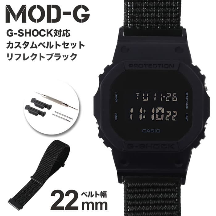 G-SHOCK 対応 ナイロンループベルト 22mm 幅 アダプター セット Gショック ジーショック 替えベルト 時計 腕時計 メンズ 交換 バンド DW-5600BB-1 ストラップ ファッション スポーツ カジュアル 大人 プレゼント ギフト MOD 部品 パーツ
