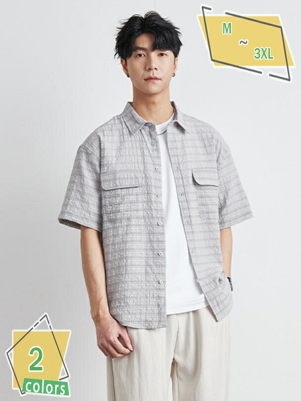 表地:ポリエステルメイン素材:コットン【ファッションデザイン】 春から真夏、そして秋まで使えるシンプル半袖シャツ。