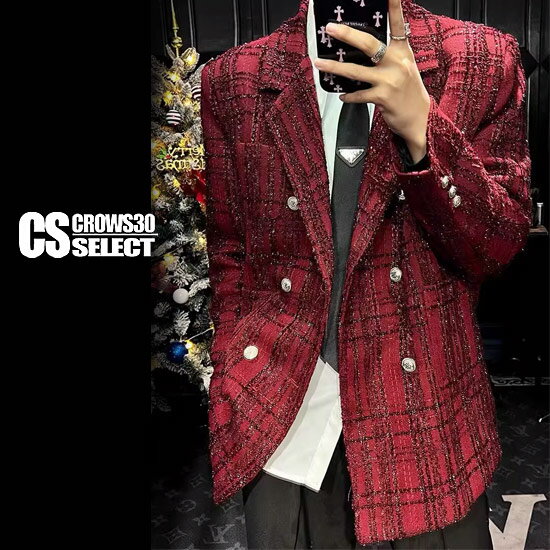 [CROWS 30 SELECT]ラメ糸仕様チェックダブルウールコート レッド/ブラック Mサイズ/Lサイズ/XLサイズ/2XLサイズ 2024SS最新アウターが販売開始! 高級感あるウール生地にラメ糸仕様と、 センス抜群のデザイン! 大人スタイル鉄板のダブルデザインに、 今流行りのオーバーシルエットで、 ゆったりと着ていただけます。