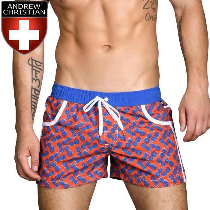 メンズ水着 海パン ブランド ショート丈 トランクスタイプ水着 男性水着 Andrew Christian アンドリュークリスチャン スイムショーツMaui Pineapple Swim Shorts (7698)