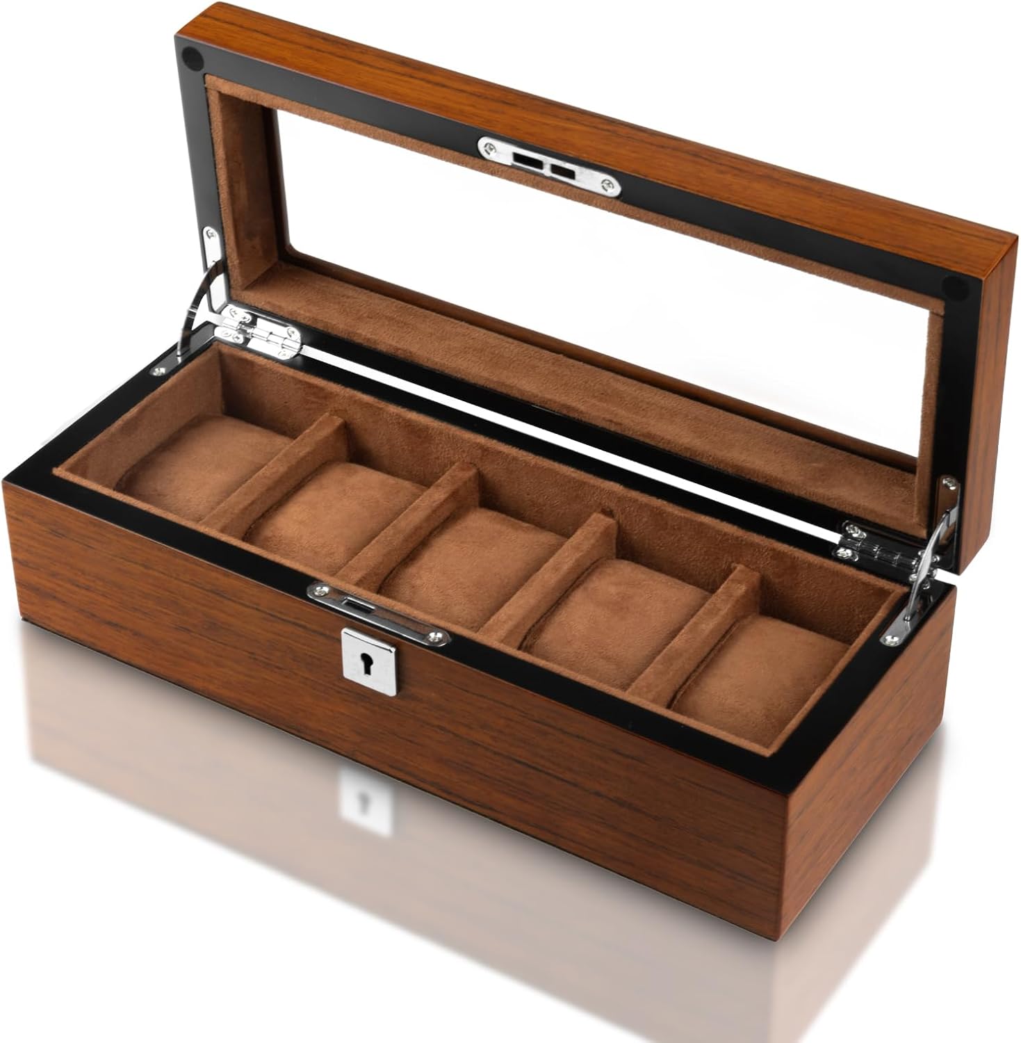5本 腕時計収納ケース 木製 時計ケース 腕時計収納ボックス 高級ウォッチボックス 透明窓付き ガラス天板 時計 コレクションケース 腕時計ケース 小物入れ 男女兼用 インタリア用 レザー製クッション