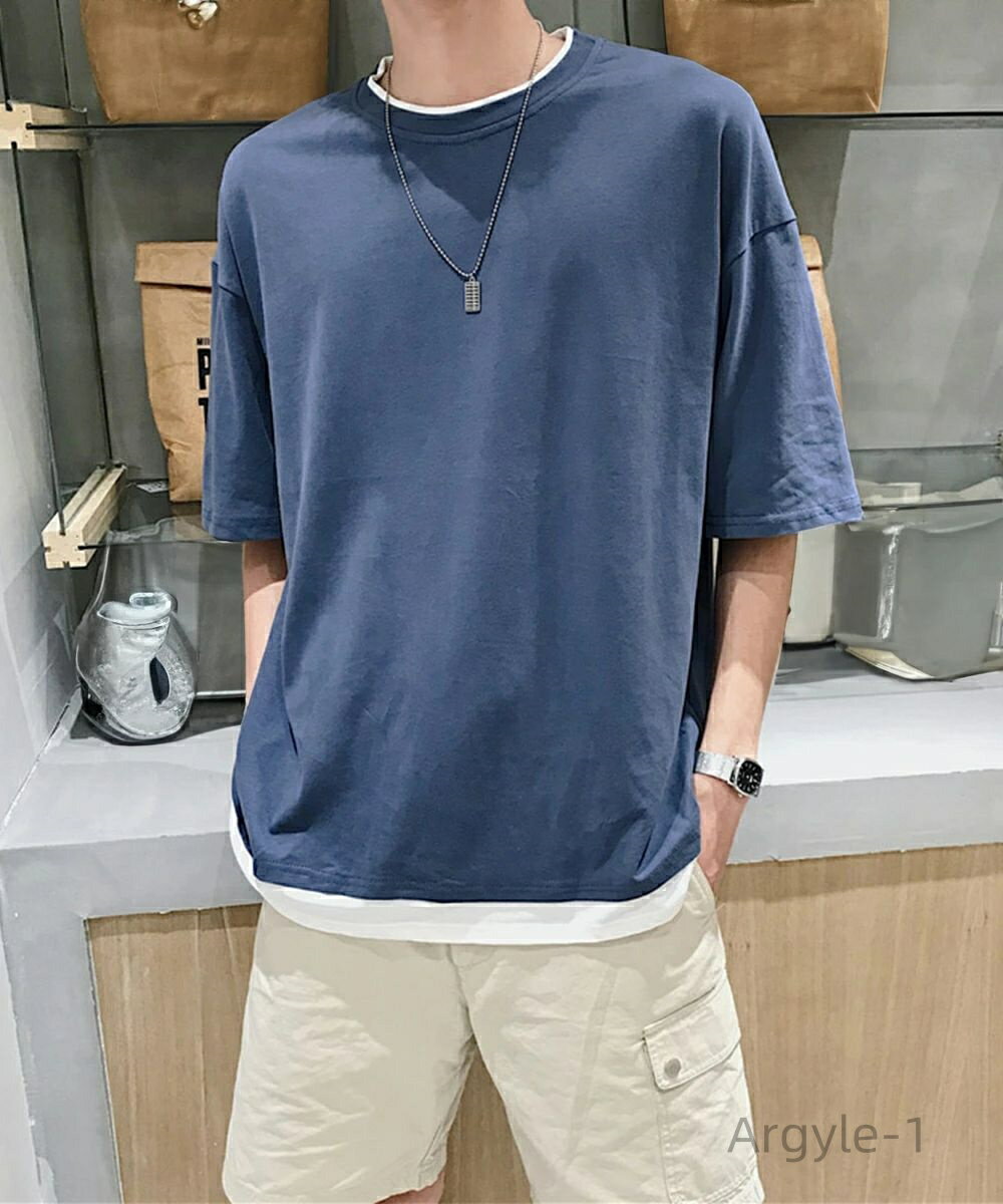 【送料無料】大人カジュアル 切り替えTシャツ 無地 韓国ファッション 重ね着トップス 半袖tシャツ オーバーサイズ カットソー