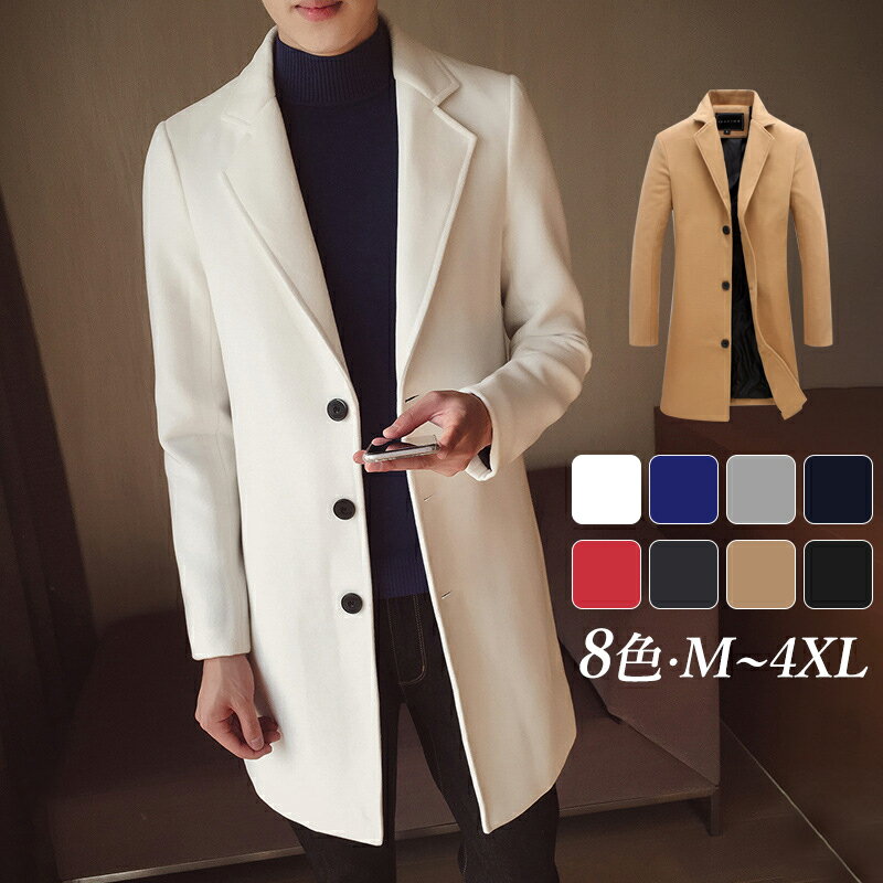 チェスターコート メンズ ファッション ミディアム丈 スプリングコート フォーマル おしゃれ 韓国風 細身 ラシャコート 20代 30代 40代 男性 ロングコート ブラック ネイビー グレー ホワイト ワインレッド カーキ 無地 シンプル ウール混コート ビジネス 通勤着 ジャケット