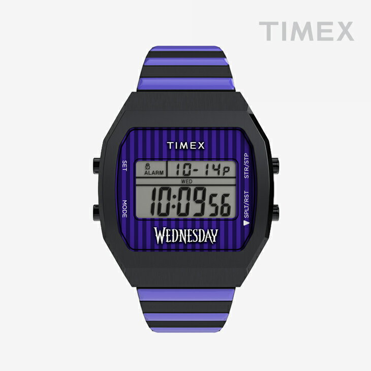 ・TIMEX|xWednesday T80 36mm Stainless Steel Bracelet/ タイメックス/ウェンズデー エイティーズ デジタル ステンレス スチール ブレスレット/ブラックxパープル #