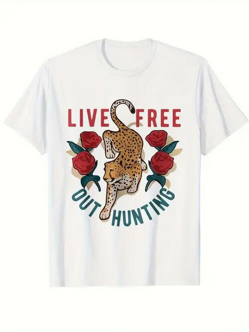 純綿Tシャツ200gチーター+バラ+文字で野性自由です!おしゃれな人、アウトドア志向の人、街に出て歩く人、歩いて歩く人、「自由な雰囲気」がいっぱいです。