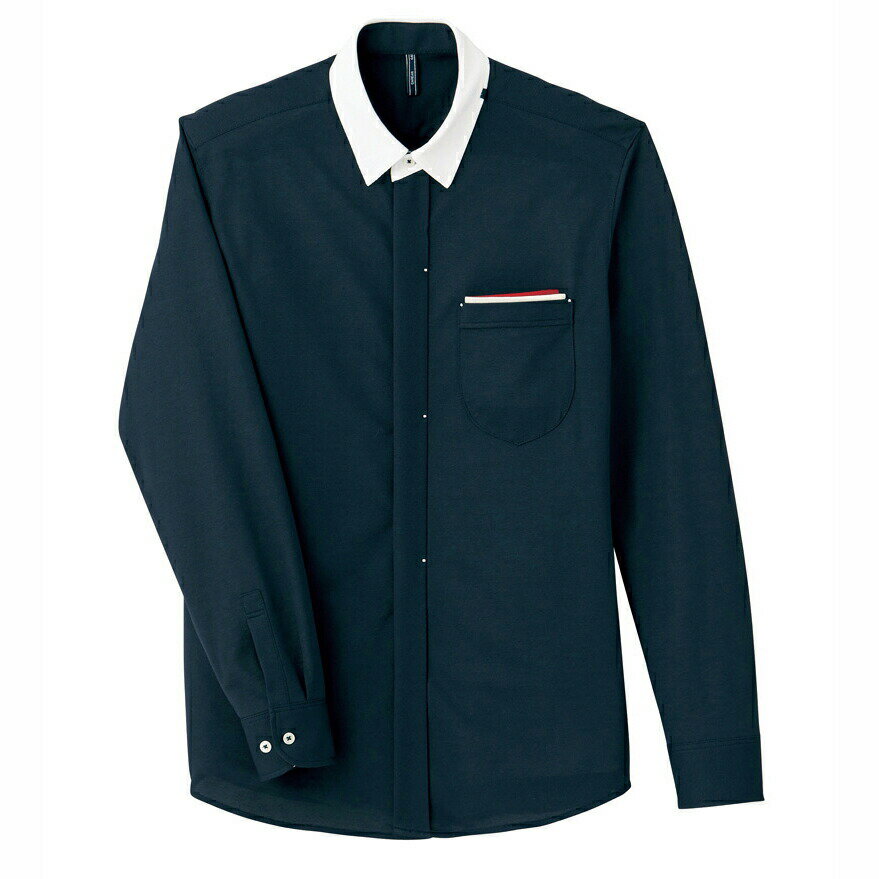 長袖ニットシャツ CWY151-2(ネイビー) L 看護師 ナース 病院 病棟 事務 ユニフォーム 制服 カーシーカシマ