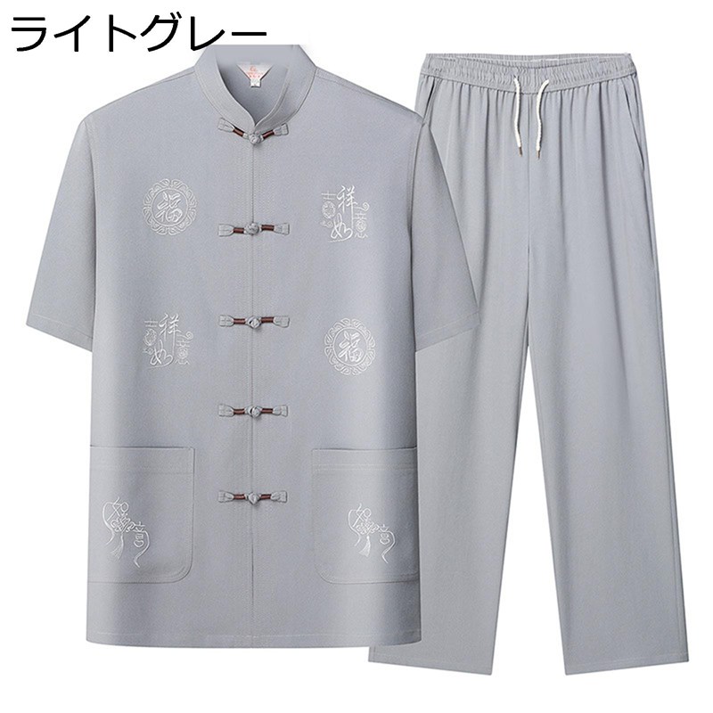 唐装 チャイナ服 メンズ 半袖 チャイナ風 文字柄 刺繍 薄手 軽量 シャツ 通気性 吸水速乾 大きいサイズ 上下セット コンフォート 耐久性 デイリー オフィス スポーツ 父の日 普段着 日常