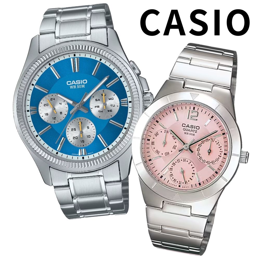 カシオ ペアウォッチ 腕時計 ステンレスベルト お揃い ユニセックス メンズ レディース ペアセット ブルー ピンク 日付 曜日表示 カップル 親子ペア プレゼント ギフト ペアギフト CASIO 時計 ★★★こちらの商品は、カシオの腕時計2本セットです★★★ 【 日常使いにぴったり|毎日に彩りを添える、カシオのスタイリッシュ・デザインのペアウォッチです。
