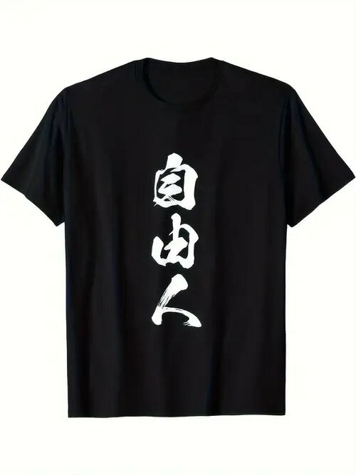 200gシンプルなのに個性を出します。黒一色の衣装の上に、白い筆で「自由人」と印刷されています。自由へのあこがれと追求が伝わってきます。独特な書体で、芸術感が溢れています。