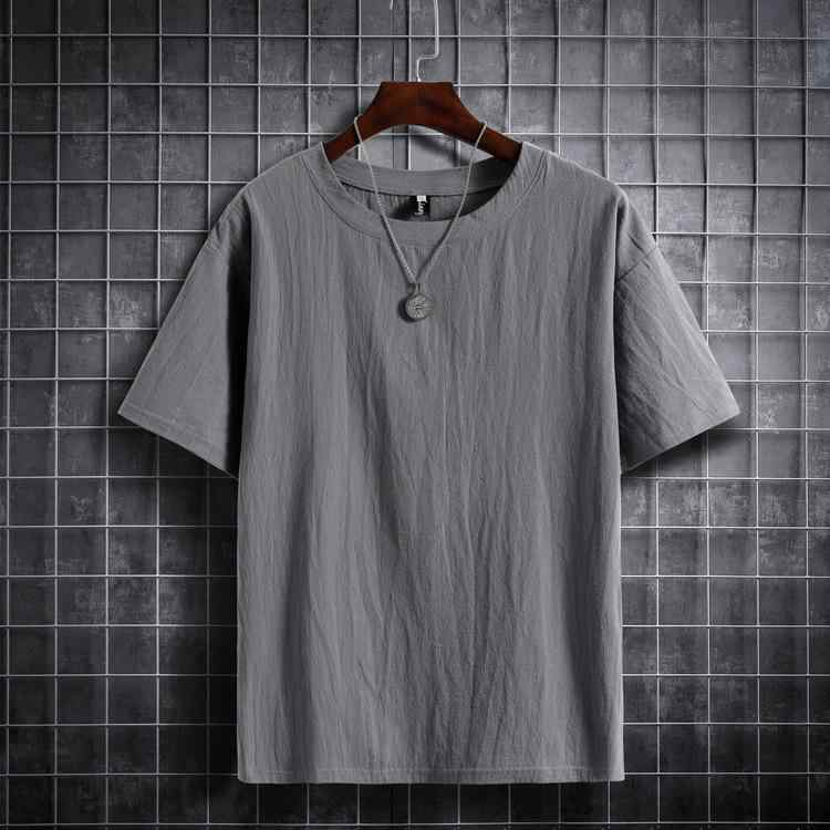 Tシャツ メンズ 春夏 綿麻 リネンブレンド 半袖 無地 ゆったり ビッグシルエット 丸首 和風 レトロ トレンド カジュアル 普段使い ベーシックカラー トップス