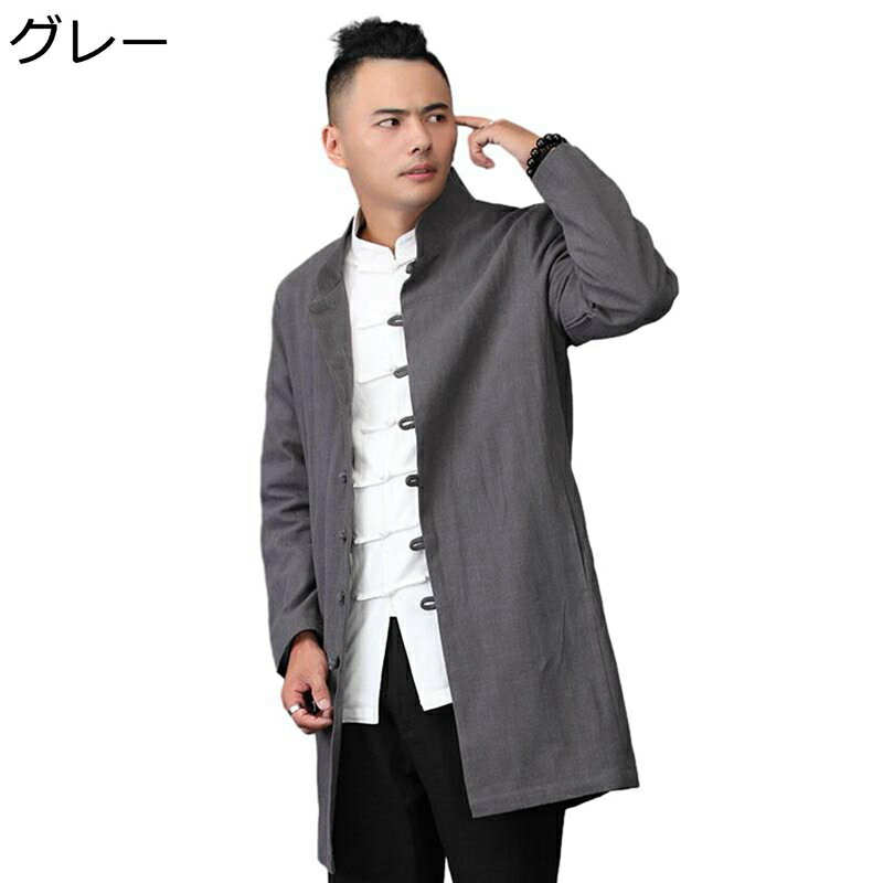 唐装 チャイナ服 茶師服 メンズ 長袖 春秋 チャイナ風 チャイナボタン 上着 アウター 無地 カジュアル ファッション ロング丈 唐衣 禅 太極拳服 若者 デイリー 普段着 トラベル