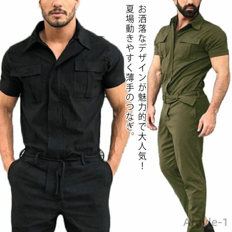 【送料無料】着痩せ 夏 半袖 涼しい ロングパンツ 作業着 半袖 作業服 オールインワン カバーオール ショートスリーブ メンズ つなぎ