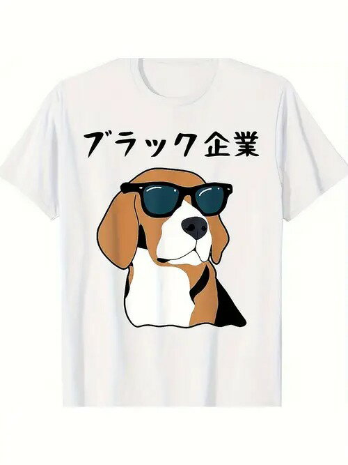 200gの白いTシャツは、柄はサングラスビーグル、服のトレンディ(日本の文字+かわいいペットのコントラスト)をテーマに、楽しさを伝えるために、日本文化のシンボル、快適で通気性の良い純綿です!