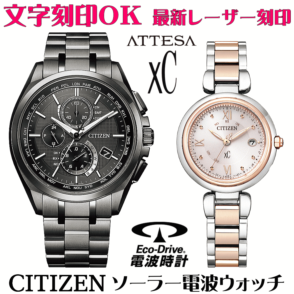 ペアウォッチ 腕時計 名入れ 文字入れ 文字刻印 ペアウォッチ販売 電池交換不要 ソーラー電波ウォッチ 北川景子さん広告着用モデル シチズン アテッサ xC クロスシー エコ・ドライブ電波時計 刻印サービス おすすめ 夫婦 カップル お揃い 還暦祝い 結婚記念日 金婚式