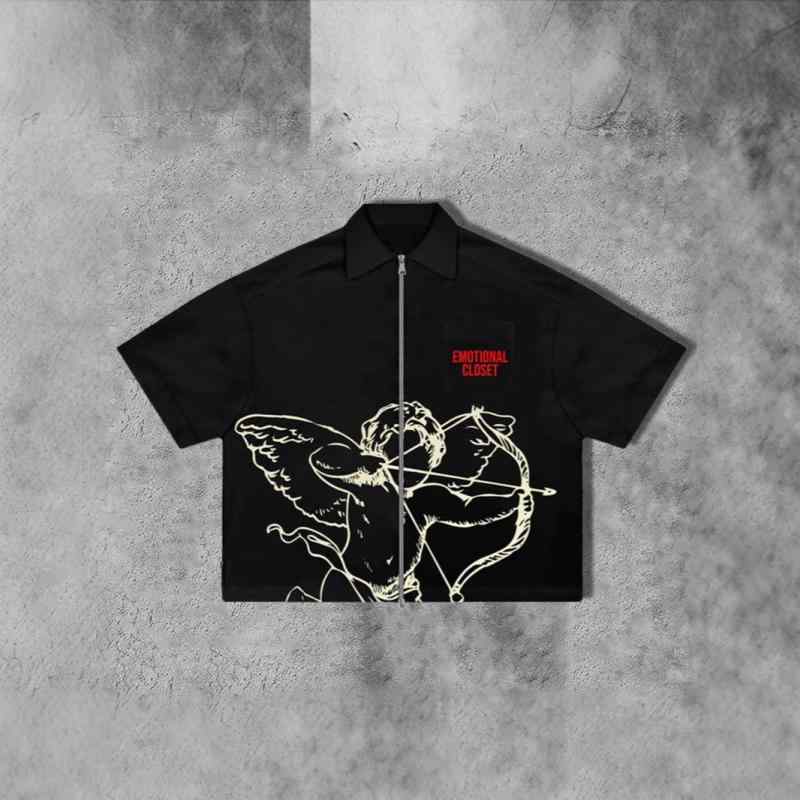 シャツ メンズ 男性用 トップス ポリエステル デジタルプリント カモフラ柄 迷彩柄 カジュアル 開襟シャツ オープンカラー ジップアップ 半袖 合体型