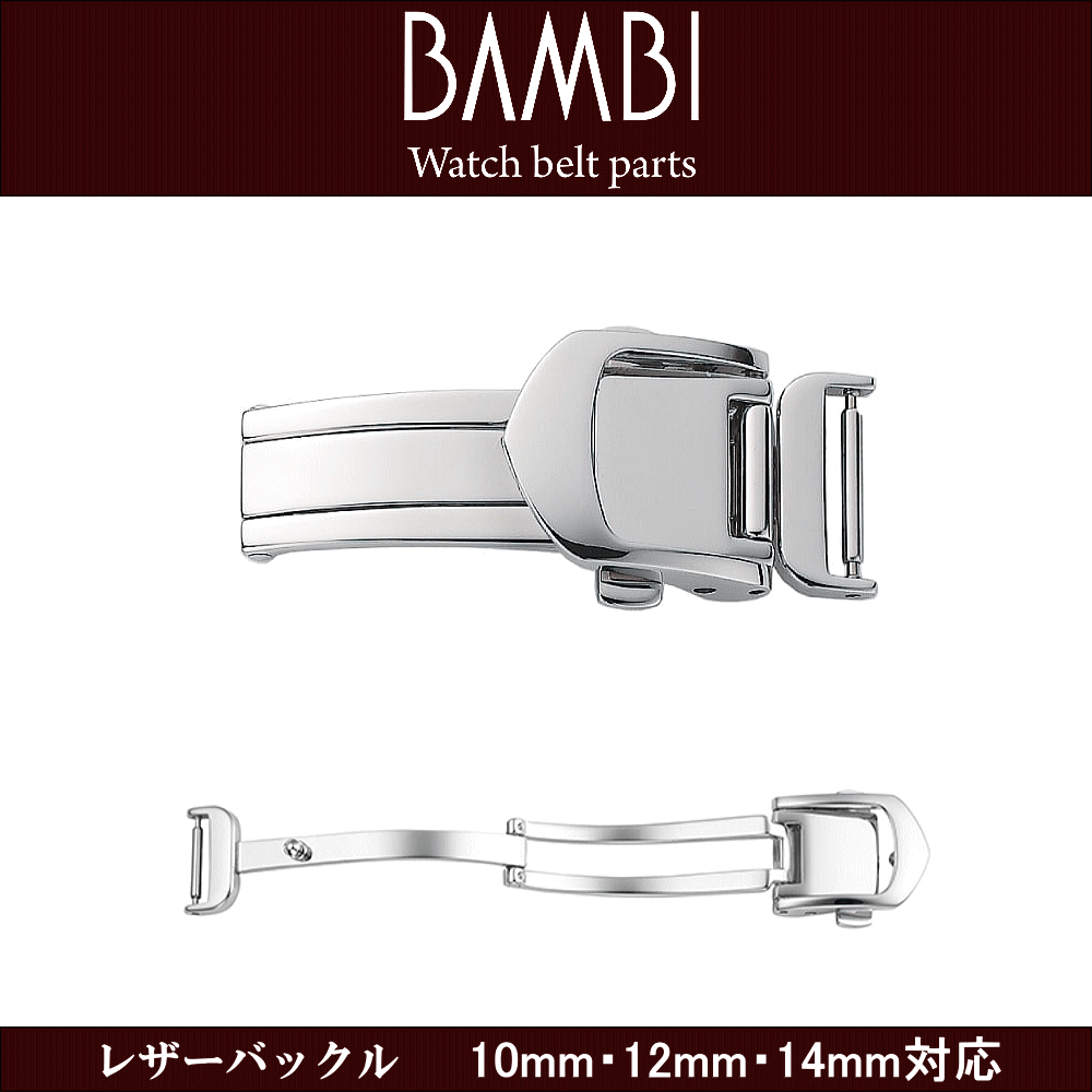 腕時計用 ウォッチ用 革バンド用 皮バンド用 バックル レザーバックル BAMBI バンビ社製 対応サイズ:10mm・12mm・14mm・16mm・18mm・20mm カラー:シルバー 時計ベルト用 皮革ベルト用 プッシュタイプ 観音プッシュ式 革バンドのダメージ軽減 簡単着脱 ウォッチ用パーツ