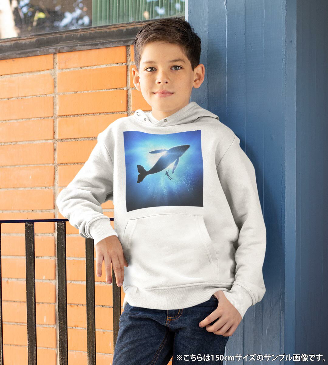 パーカー キッズ ホワイト グレー ブラック デザイン 110 130 150 parker hooded sweatshirt フーディ 白 黒 灰色 子供 男の子 女の子 012663 クジラ シルエット ダイビング