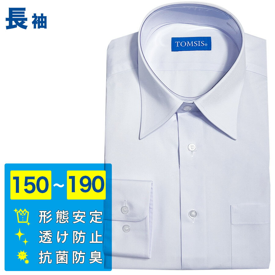【送料無料】長袖スクールシャツ A体 抗菌 防臭 形態安定 透け防止 防透 透けにくい UVカット ノーアイロン 多機能 高機能 男の子 男子 男児 メンズ 高校 中学 小学校 学生 制服 Yシャツ ワイシャツ 角襟
