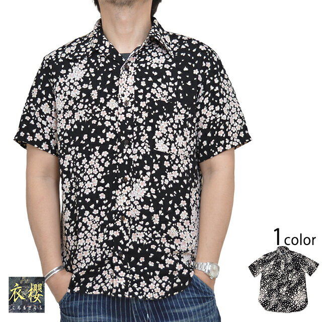 二越縮緬半袖レギュラーシャツ「桜吹雪」 衣櫻 SA-1390 和柄 和風 さくら サクラ 日本製 国産