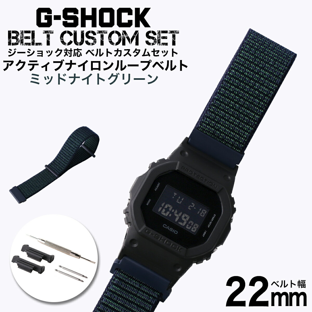 G-SHOCK 対応 アクティブナイロンループベルト ミッドナイトグリーン 22mm 幅 アダプター カスタム セット Gショック 替えベルト NYLON BELT 時計 腕時計 メンズ 交換用 バンド ストラップ 人気 おすすめ おしゃれ スーツ ビジネス 大人 改造 DIY MOD