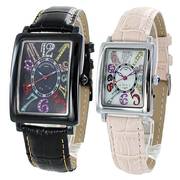 ペア 時計 ピエールタラモン 腕時計 手表 ペアウォッチ メンズ 父の日 レディース 母の日 大人カップル 贈り物 ギフト ブラック ピンク 本革レザー トノー型 おそろい ランキング お祝い