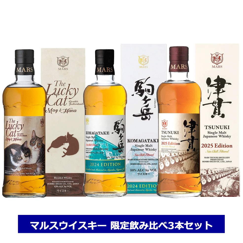 マルスウイスキー 3本セット ザ・ラッキーキャット メイ&ハナ 700ml 駒ヶ岳 2024 700ml シングルモルト津貫 2025 700ml 本坊酒造 送料無料