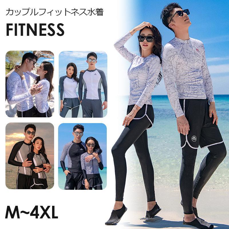 ラッシュガード ペア カップル 長袖 ペアルック 水着 レディース 上下 セット メンズ ウェットスーツ セットアップ 競泳 人気 大きいサイズ おしゃれ