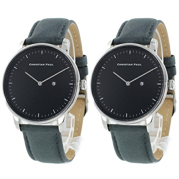 ペア 結婚祝い 夫婦 友達 カップル クリスマスプレゼント クリスチャンポール 腕時計 ペアウォッチ メンズ レディース 日付表示 黒文字盤 グレー レザー ★★★こちらの商品は、腕時計2本セットのペア商品になります。