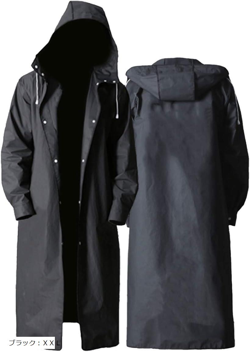【楽天ランキング1位入賞】カジュアル レインコート ロング かっぱ ハイキング ポンチョ軽量 EAV 防水 撥水加工 アウトドア 登山 遠足 ブラック:2XL(ブラック, 2XL)