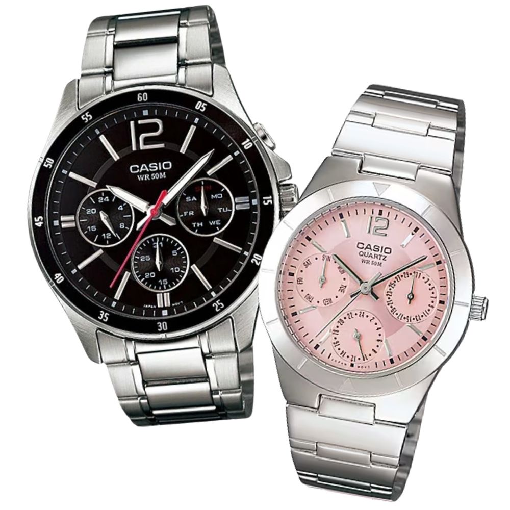 カシオ ペアウォッチ 腕時計 ステンレスベルト お揃い ユニセックス メンズ レディース ペアセット ブラック ピンク 日付 曜日表示 カップル 親子ペア プレゼント ギフト ペアギフト CASIO 時計 ★★★こちらの商品は、カシオの腕時計2本セットです★★★ 【 日常使いにぴったり|毎日に彩りを添える、カシオのスタイリッシュ・デザインのペアウォッチです。