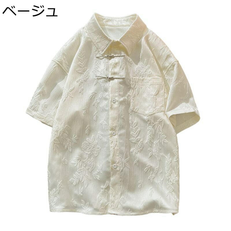 半袖シャツ 中国風シャツ チャイナ風 前開き 夏服 ジャカード 大きいサイズ メンズファッション チャイナトップス シャツジャケット 五分袖 春服 夏 インナー 唐装 漢服 太極拳 武術服 薄い チャイナボタン 若者