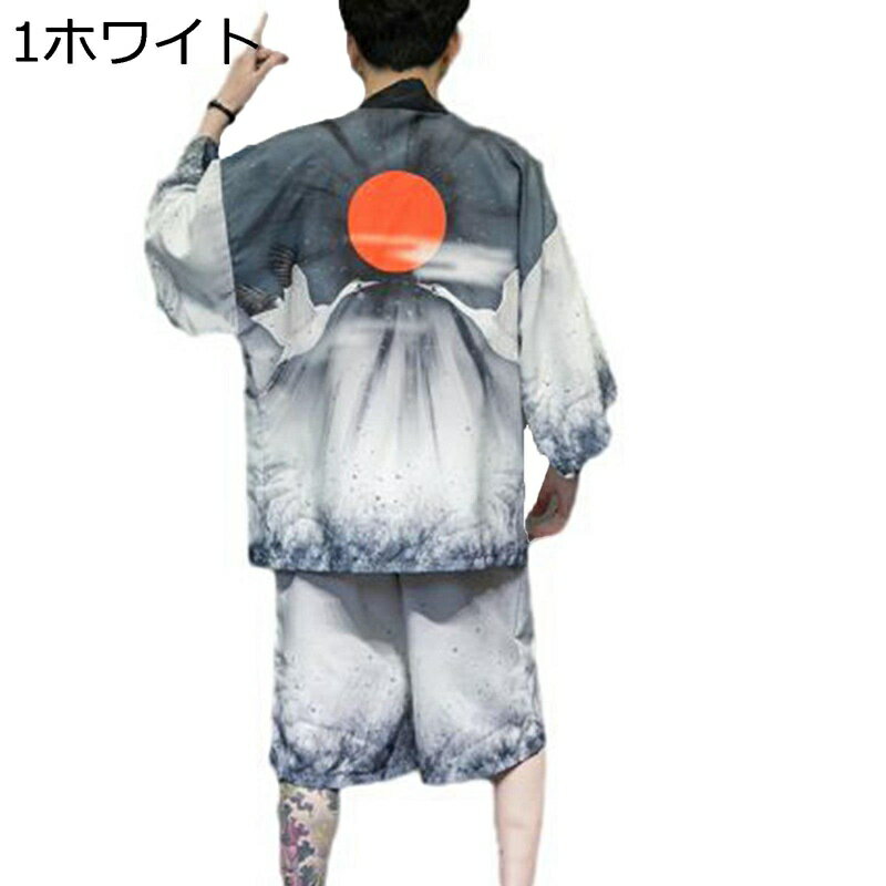 メンズ 和式パーカー 羽織り ショートパンツ 2点セット 夏 七分袖シャツ 浴衣 カーディガン ゆったり UVカット アウター 上下セット おおきいサイズ ストリート系 薄手 冷房対策 ビーチシャツ 旅行