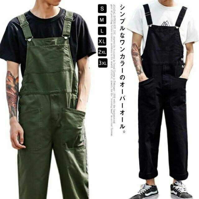 【送料無料】オーバーオール メンズ サロペット 薄手 作業着 綿 ゆったり カーゴパンツ サイドボタン カジュアル レディース オールインワン カーキ ブラック おしゃれ 秋 冬 春 夏 LL 2L 3L 大きいサイズ