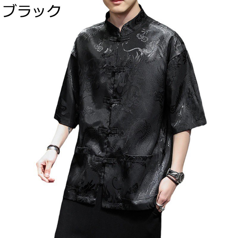 唐装 チャイナシャツ メンズ 半袖 龍柄 中華風 薄手 漢服 伝統服 チャイナボタン 上着 武術シャツ 大きいサイズ ファッション カッコイイ アウトドア 旅行 耐久性 通気性 軽量 涼しい 夏服