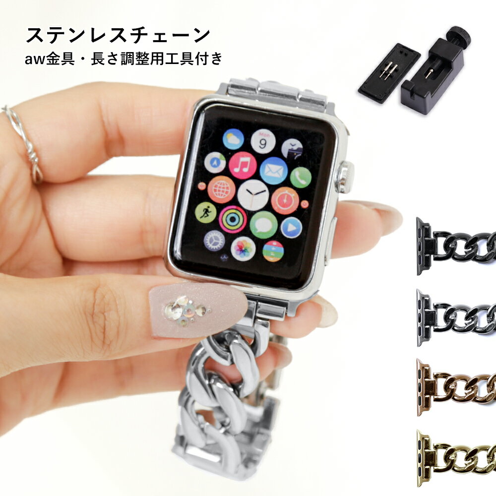 アップルウォッチ9 バンド レディース ステンレス チェーン applewatch series 9 バンド 40mm 41mm 46mm 38mm アップルウォッチ SE2 バンド アップルウォッチ8 バンド applewatch10 applewatchSE 第2世代 バンド apple watch ベルト おしゃれ かわいい ステンレス